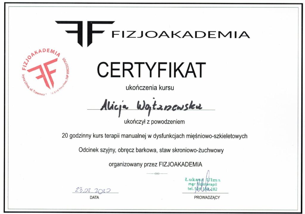 Kurs terapii manualnej dysfunkcjach mieśniowo-szkieletowych